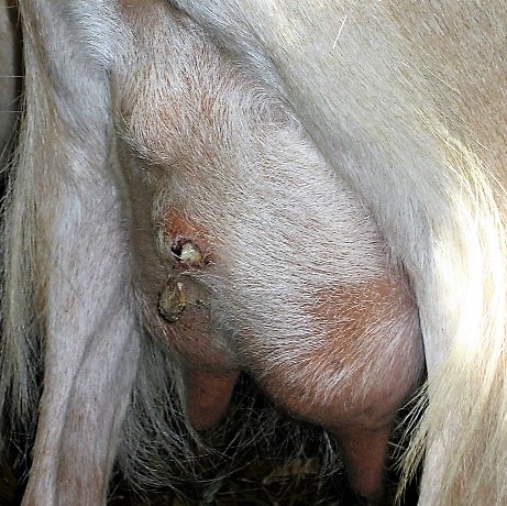 La pseudotuberculose est occasionnée par la bactérie Corynebacterium pseudotuberculosis. Le germe colonise les ganglions lymphatiques et s’y multiplie. Il produit une toxine qui dissout les tissus et provoque des abcès. Une fois qu’un abcès mûr perce, il s’en écoule du pus contenant le germe, lequel peut survivre plusieurs mois dans l’environnement. La contamination se fait en premier lieu via ce pus, mais elle est également possible par l’intermédiaire du lait ou du colostrum contaminés.
